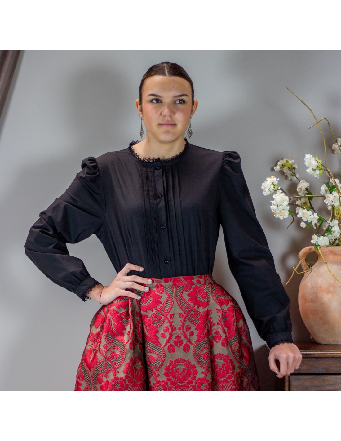 Camisa de lorzas ideal para tu traje regional.