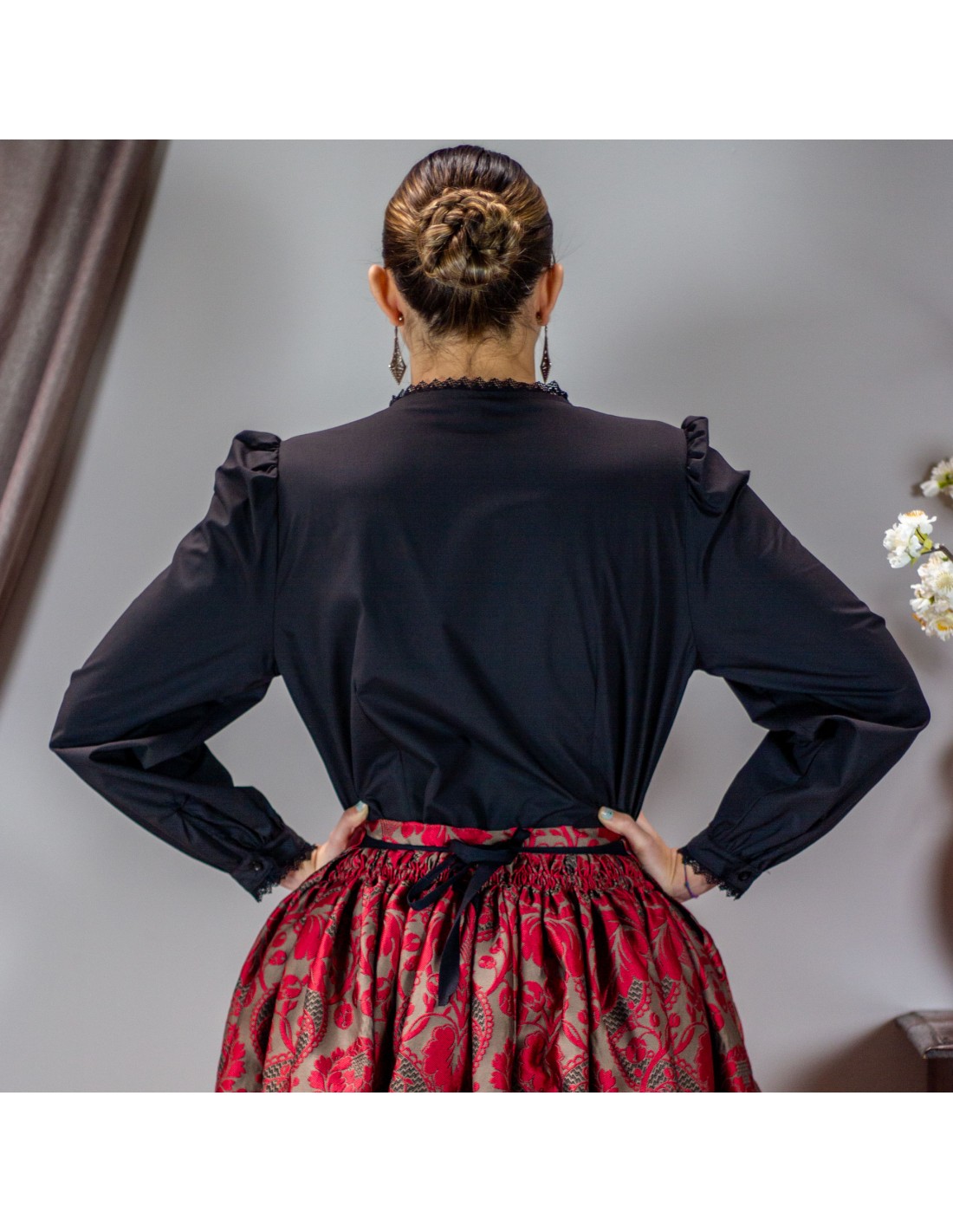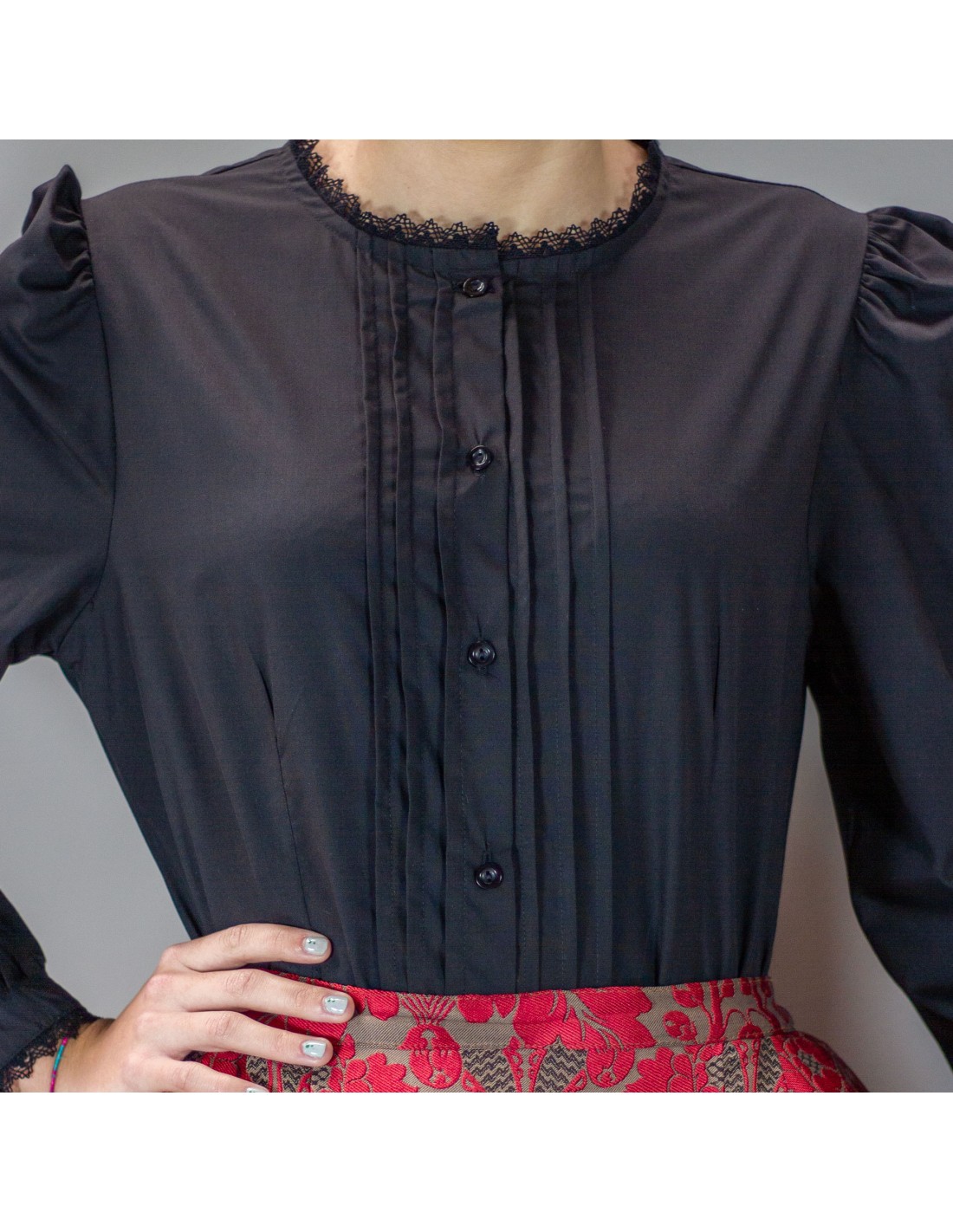 Camisa lorzas señora negra.