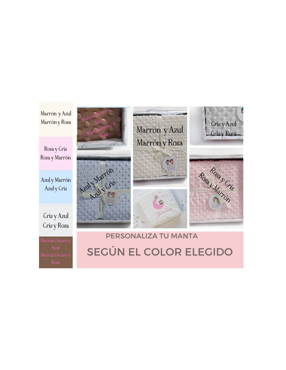 Elige el color de la manta , y los colores del bordado.