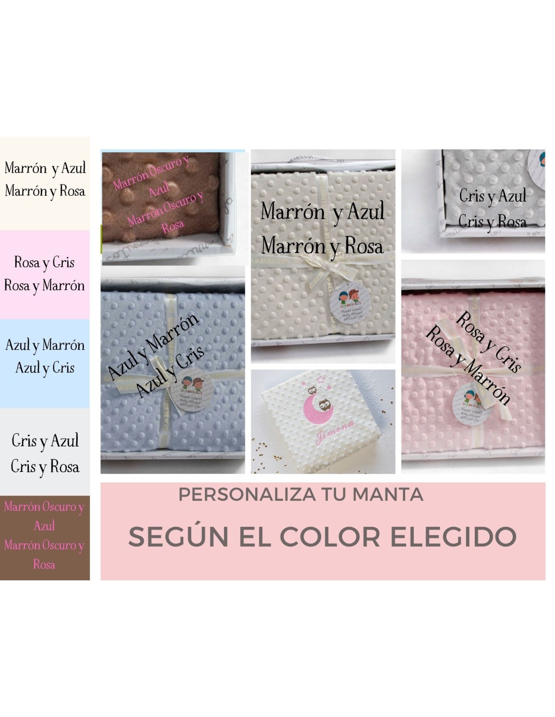 Manta infantil con bordado de pajarita y personalizada con el nombre que tú quieras .