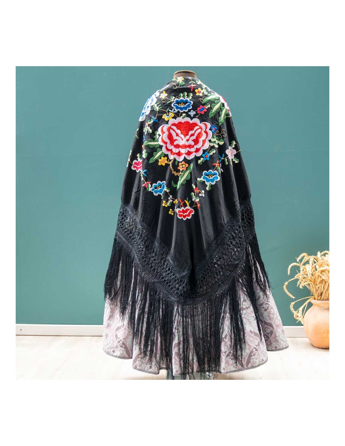 Mantón manila antiguo , 150 X 150 .