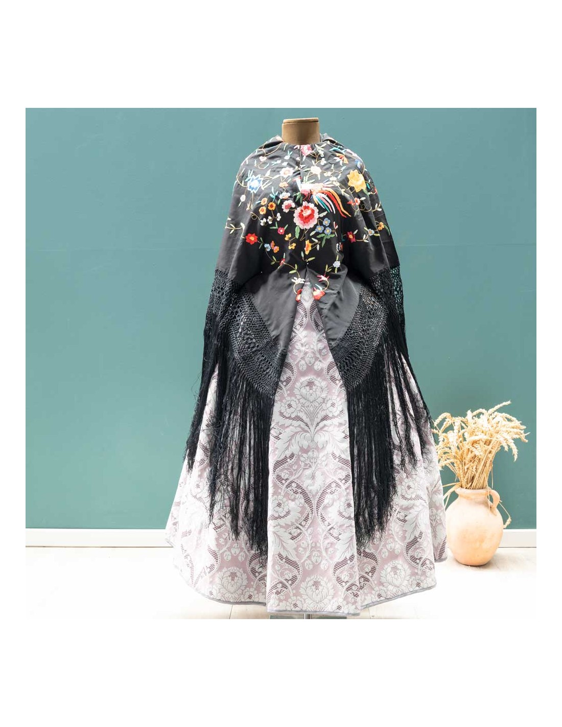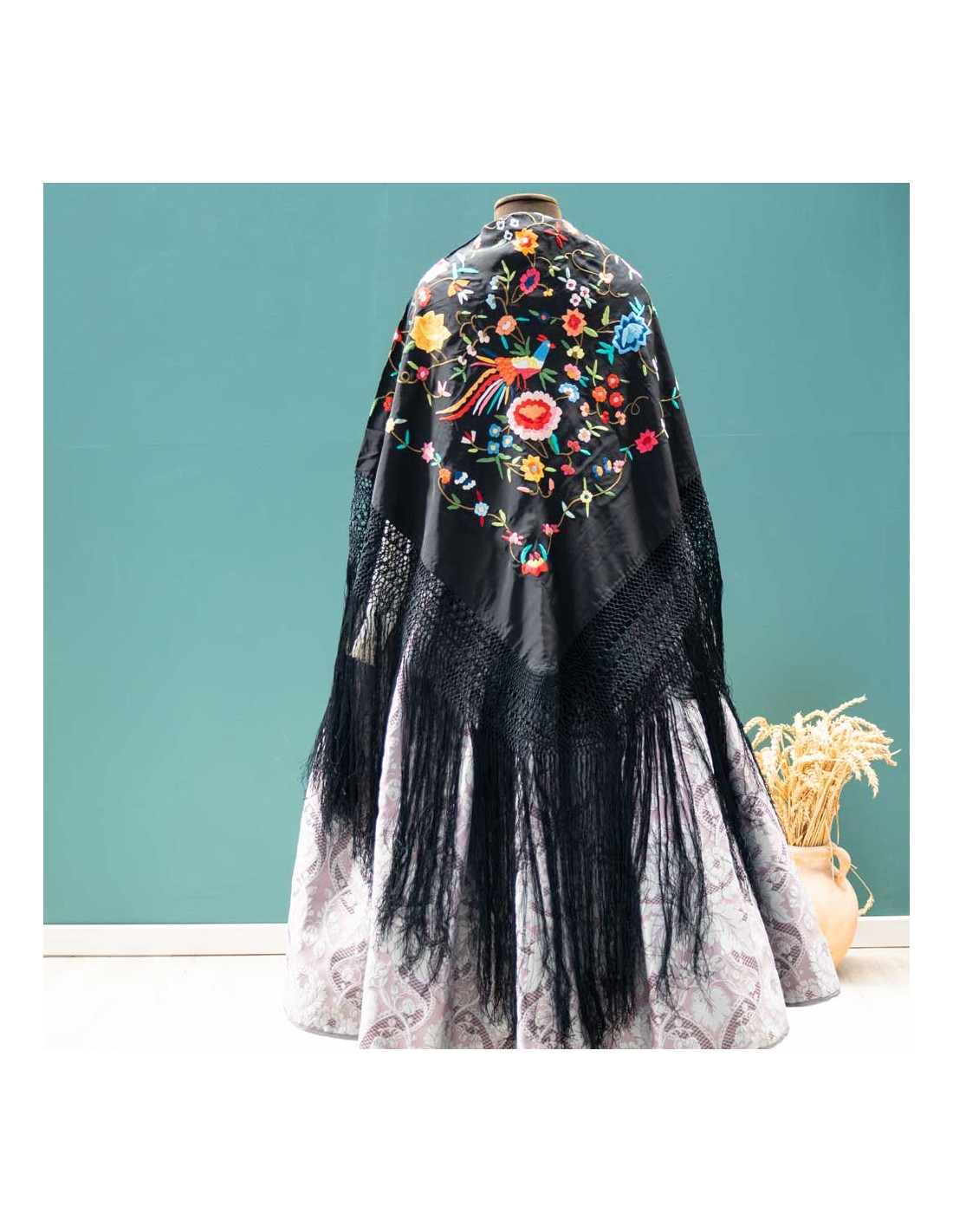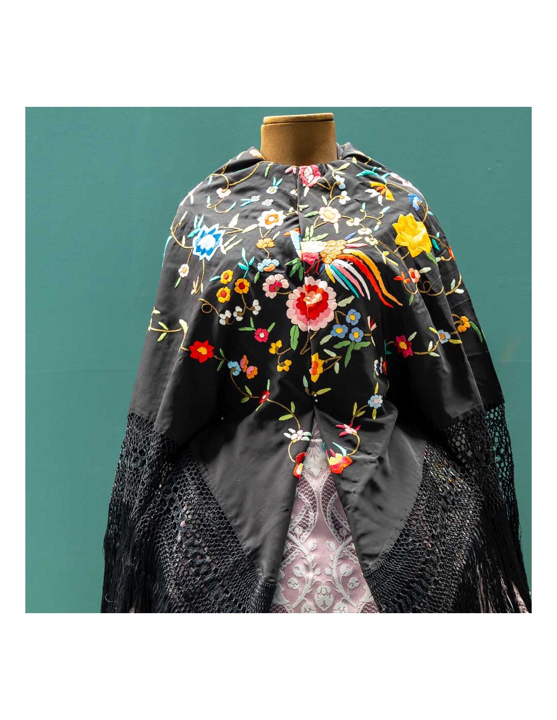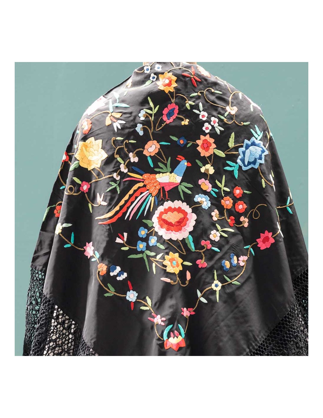 Mantón manila antiguo , 130 X 130 .