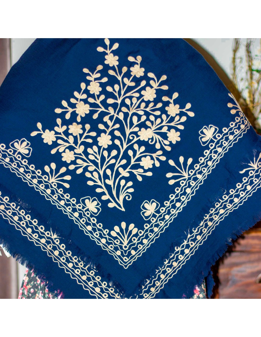 Precioso mantón de fibrana bordado a cadeneta .
